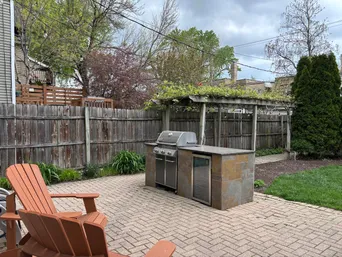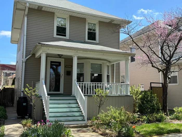 Charming American Four Square, complete with welcoming front porch. This lovely home tastefully combines classic architectural details from the past with the conveniences of everyday life. The first floor has warm HR floors, a light filled bay window in the LR, separate formal DR, custom blinds, all highlighted with arched doorways and traditional trim work. The updated kitchen has all new SS appliances (2023) including an induction oven with outside ventilation. Off the kitchen is a cheery Sun Room, drenched in natural light from walls of windows and views of the professionally landscaped backyard. This room is kept toasty in cooler seasons by the nice heated floors. There is also a convenient half bath on this floor. Up the classic staircase to 3 generous bedrooms. The primary bedroom incudes a spacious walk-in closet and the 2nd bedroom has a sunny tandem room, perfect for a child's playroom. The full bath has been recently updated and includes comfy heated floors. The finished basement extends the homes living space with a rec room, plus an office/bonus room and a 2nd full bath. There is a large and separate laundry room with plenty of space for storage. The backyard is a wonderful & serene retreat with a brick paver patio, built-in BBQ, enchanting wooden trellis and a professionally landscaped backyard designed with seasonal flowers to bloom throughout the spring & summer. Located just a block from Haugan Elementary School and nearby trendy Old Irving Brewery, neighborhood restaurants, Independence Park, the Metra, Brown & Blue Lines. This warm and wonderful home awaits! Scheduled showings only begin Thursday, April 30th, schedule your showing today!